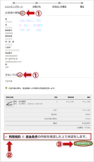 ※銀行振込・代金引換のお客様は手順7「注文内容を確認し、確定します。」へお進み下さい。